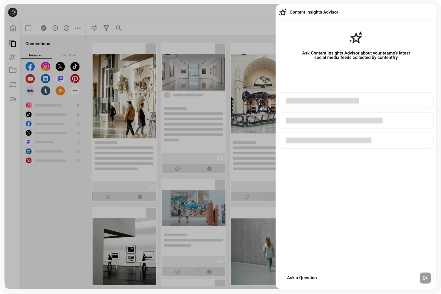 Mit unsere neuen direkten ChatGPT Anbindung kannst du all deine aggregierten Social Media Inhalte direkt im Dashboard analyiseren. Erzeuge Insightes, finde Trends und optimieren deine Social Media Strategie.
