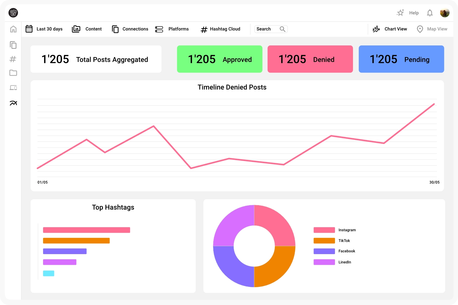 Insights liefern dir automatisch die relevantesten Kennzahlen zu deiner Social Wall. Erkenne Trends, performante Inhalte und Nutzerinteraktionen in Echtzeit – ohne manuelle Auswertung oder komplizierte Reports.