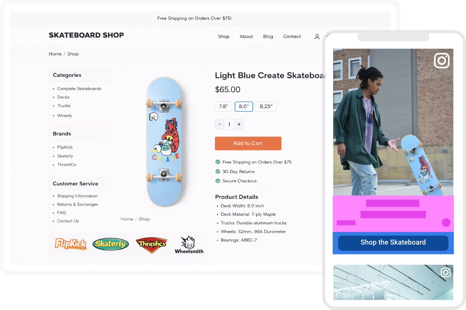 Guide your customers from inspiring content straight to your offers. The Call-to-Action button makes content clickable and eliminates friction in the buying process—right at the point of inspiration.