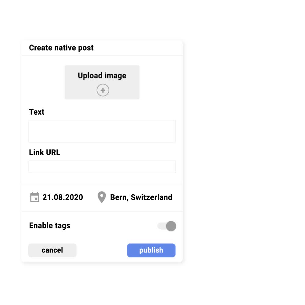 Direct upload for text, image, video, and social embeds